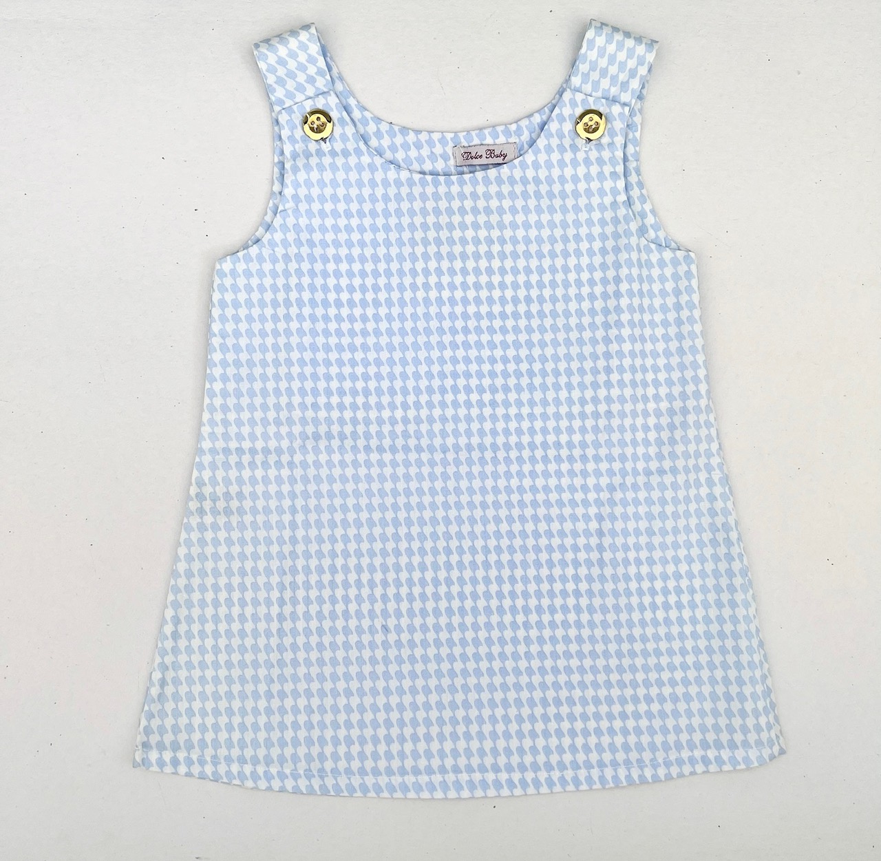 Roupa – Vestido Jardineira Ondas Azul e Branco